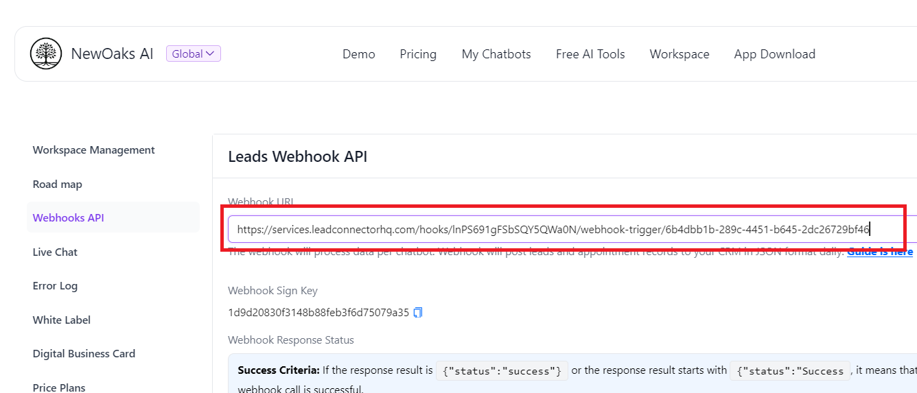 - Paste Url that copied from GoHighLevel to